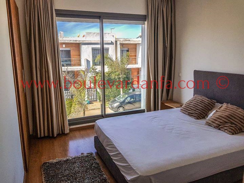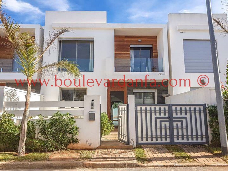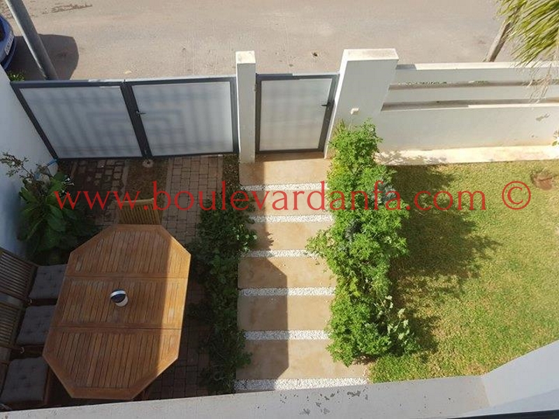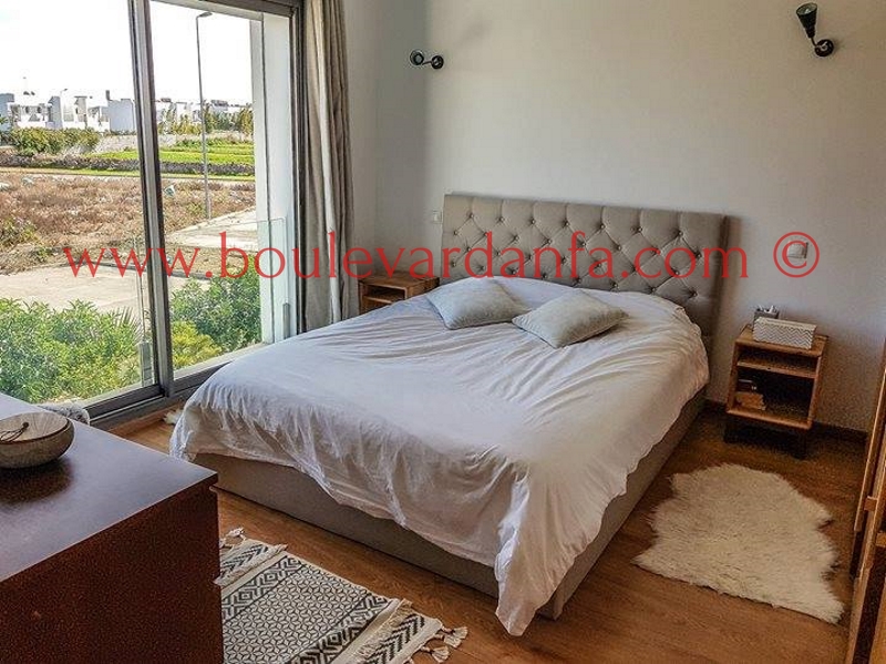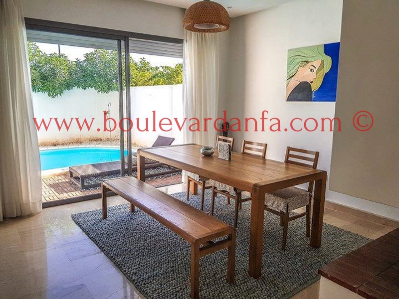 Très jolie villa à louer meublée sur Dar Bouazza dans un quartier très calme et proche de toutes les commodités. Elle est composée de 3 chambres, 3 salons, 3 salles de bain et d'une cuisine très bien équipée.