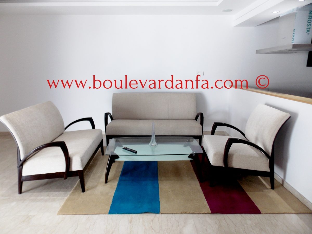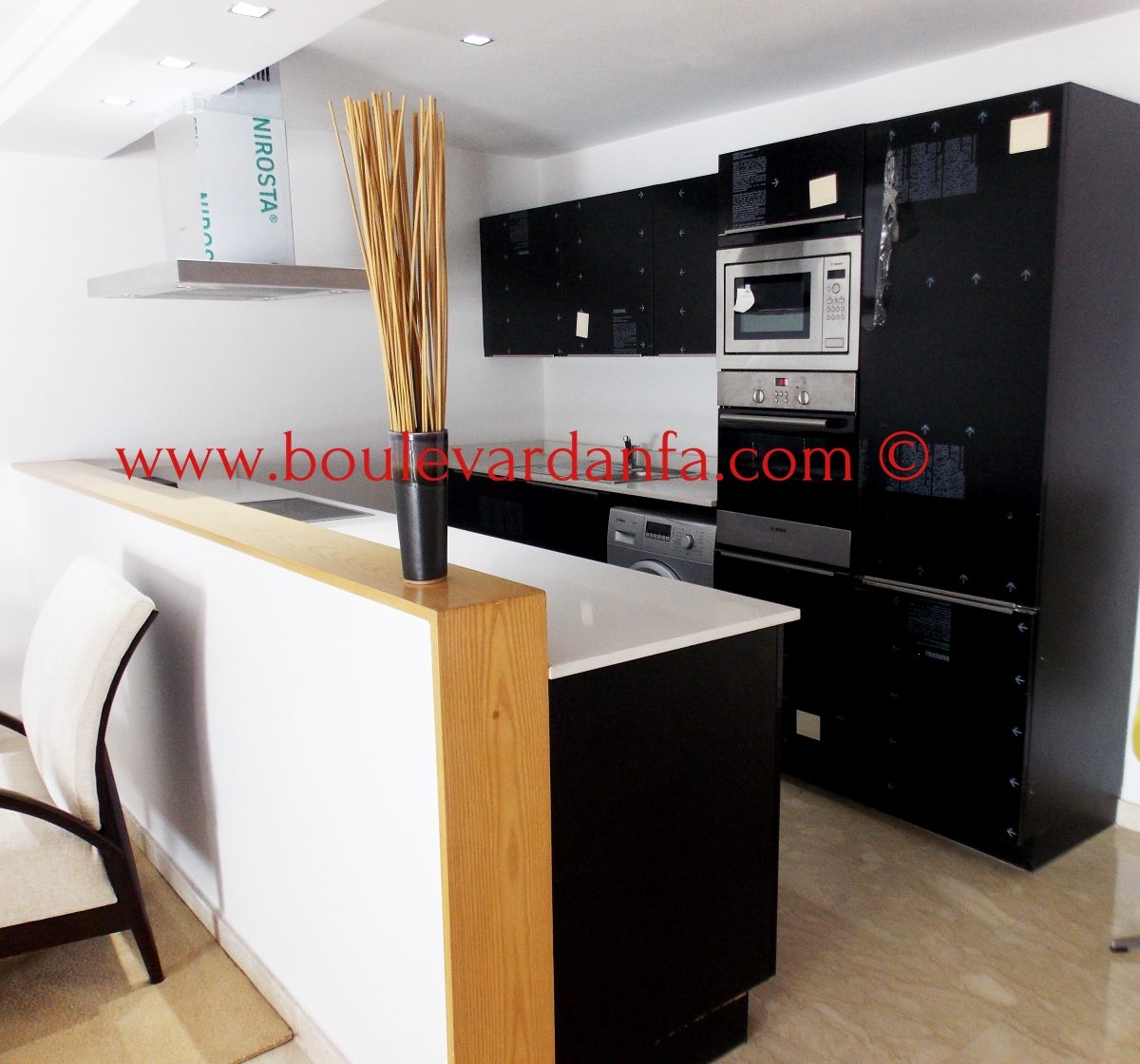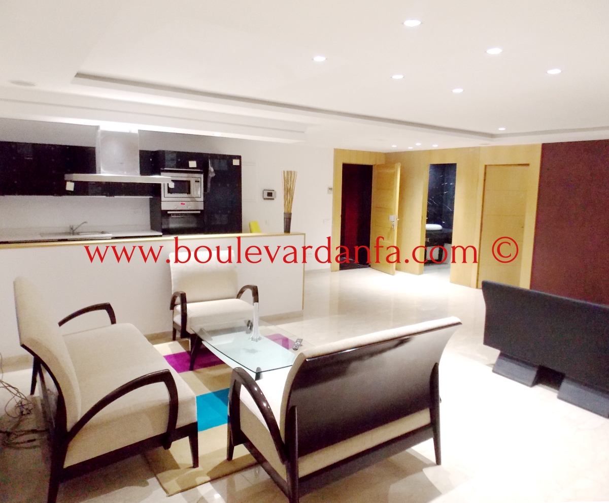 Très joli appartement meublé de 96m² à louer à gauthier dans une résidence neuve avec concierge et proche de toutes commodités. Il est composé de deux chambres, un salon, une salle de bain, et une cuisine bien équipée.