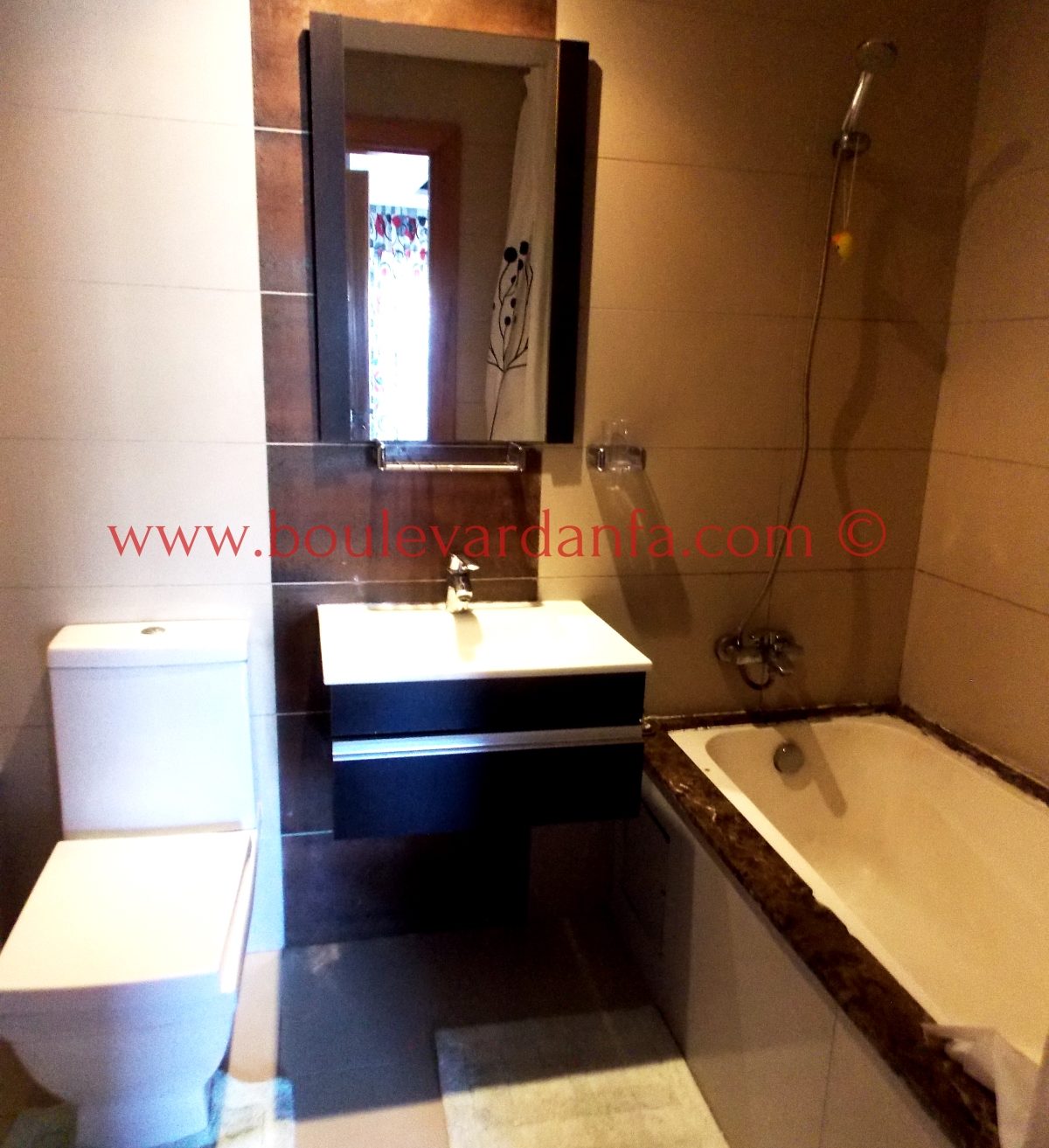 Très Joli appartement meublé à louer à quelques pas de Boulevard d'Anfa au centre de Casablanca. Cet appartement meublé avec goût est composé de deux chambres, deux salles de bain, un salon, et une grande terasse, le tout au 4ème étage d’une résidence sécurisée.