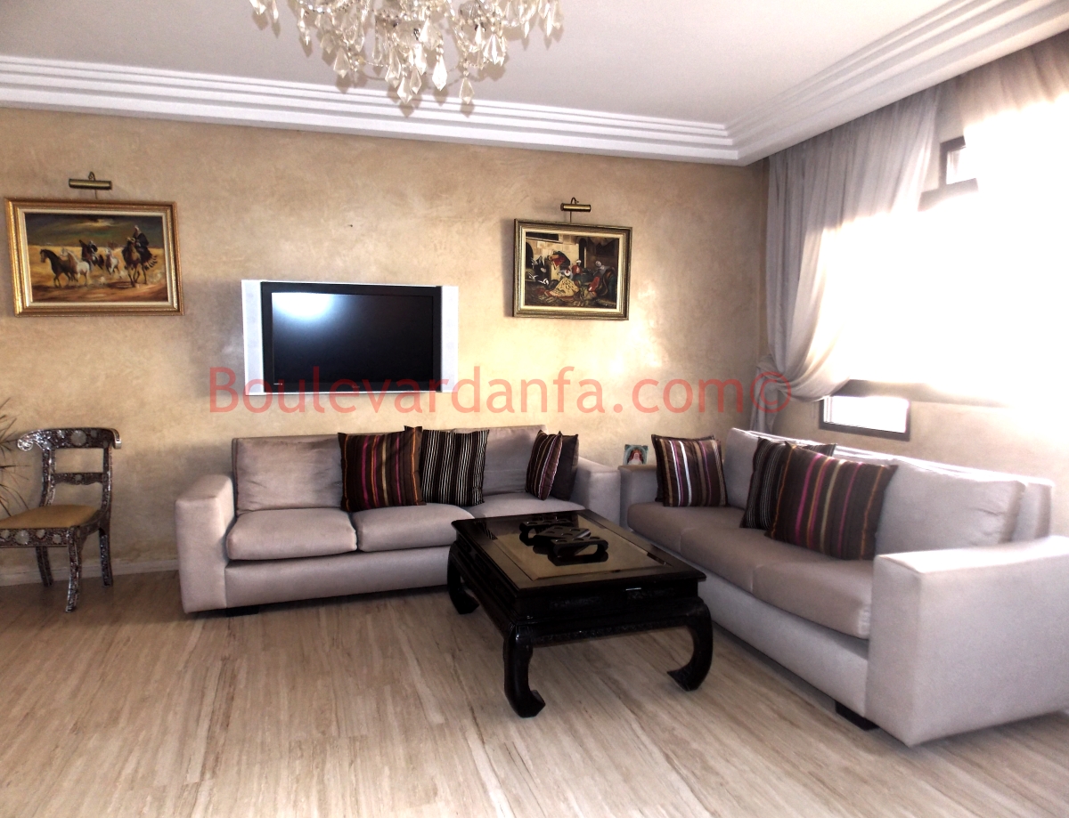 Appartement très haut standing en plein cœur racine, quartier affaire et loisirs de Casablanca, L'appartement se compose de :