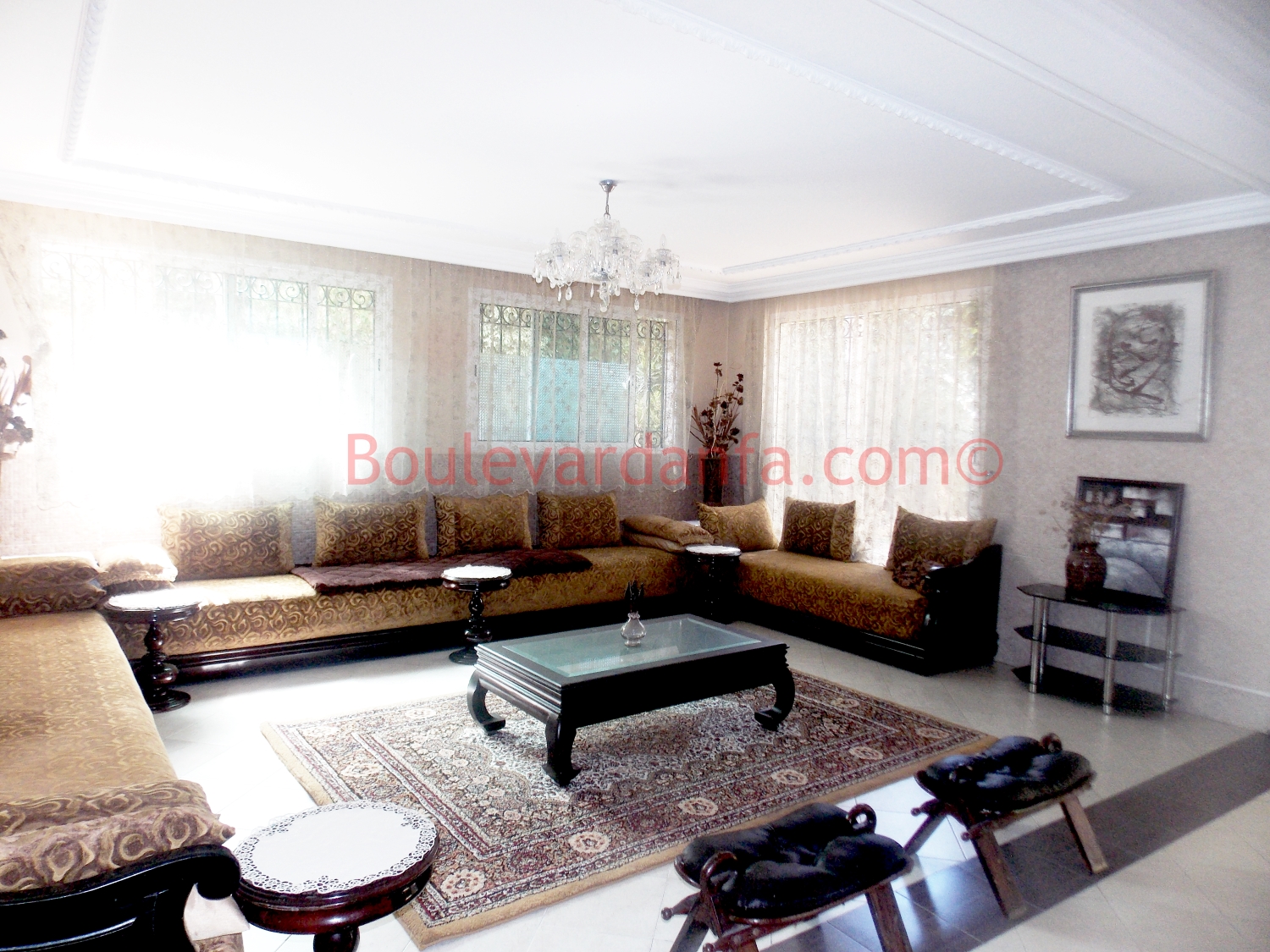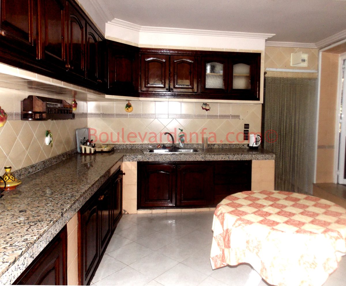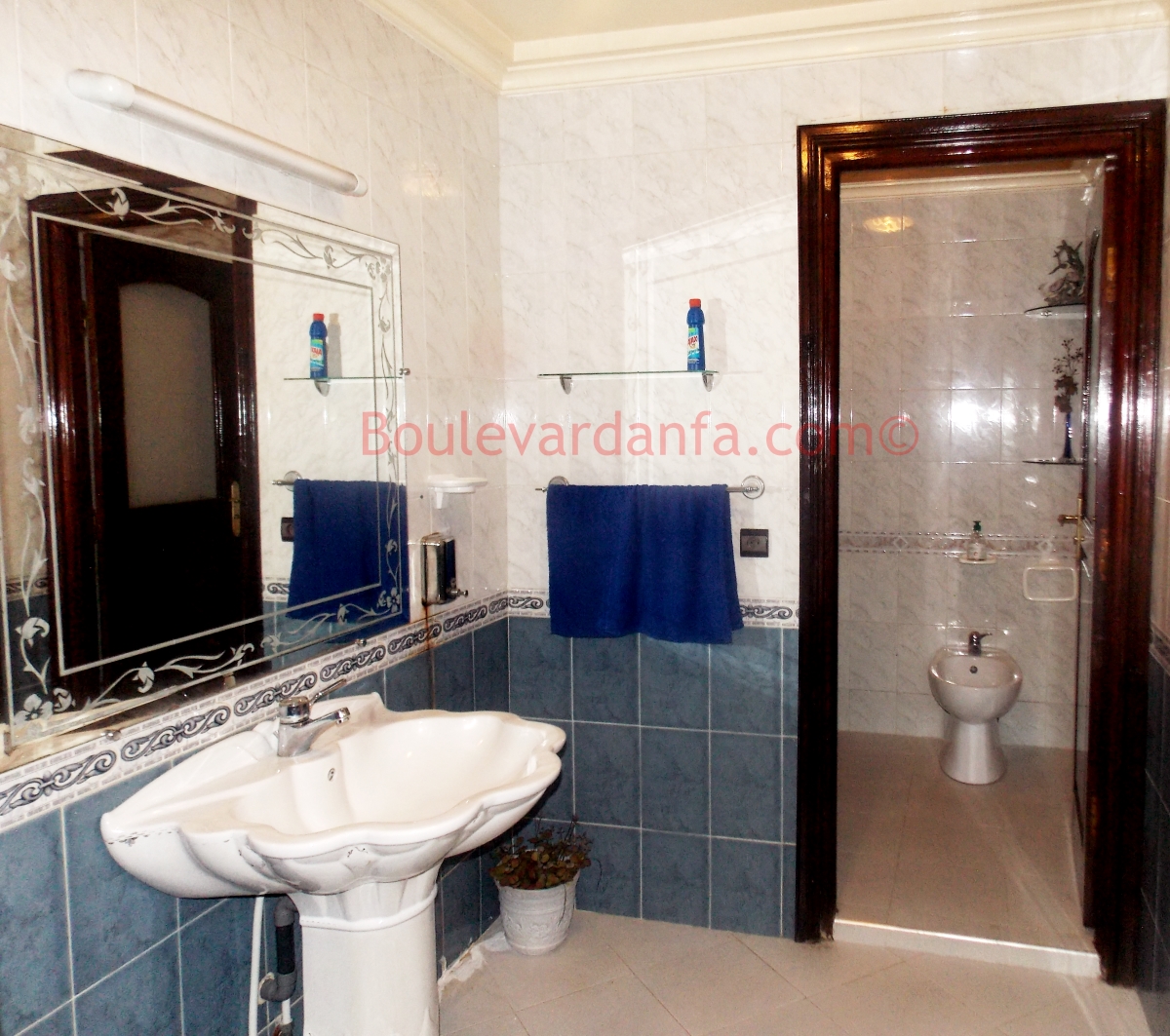 Dans un quartier calme, zone villa, proche de la zone offshore et de toute commodité et moyens de transport, se trouve ce joli appartement mené d’un jardin coquin et terrasse pour un bon chez soi. L’appartement à 150m² habitable se compose de 2 chambres à coucher avec lit single supplémentaire menés de placards, d’un grand salon marocain, salon américain et table à manger. La salle de bain est partagée en 3 pièces différentes et donc bien aménagée. La cuisine dispose d’une buanderie. Pour plus de paix, un espace jardin spacieux et verdoyant.