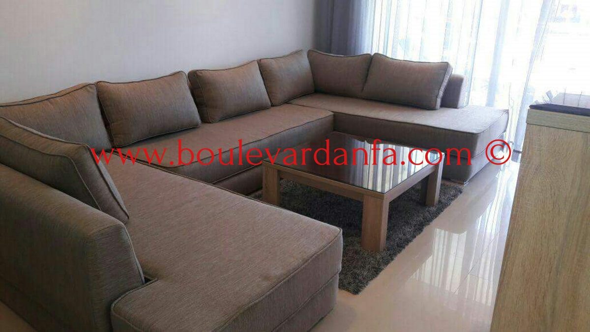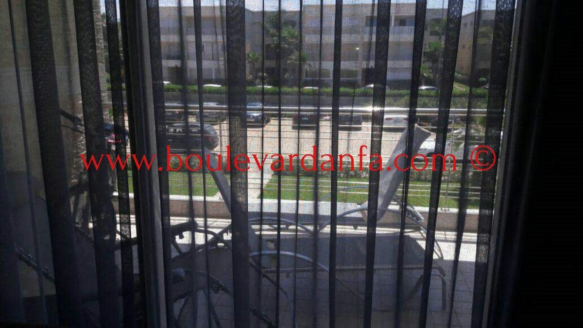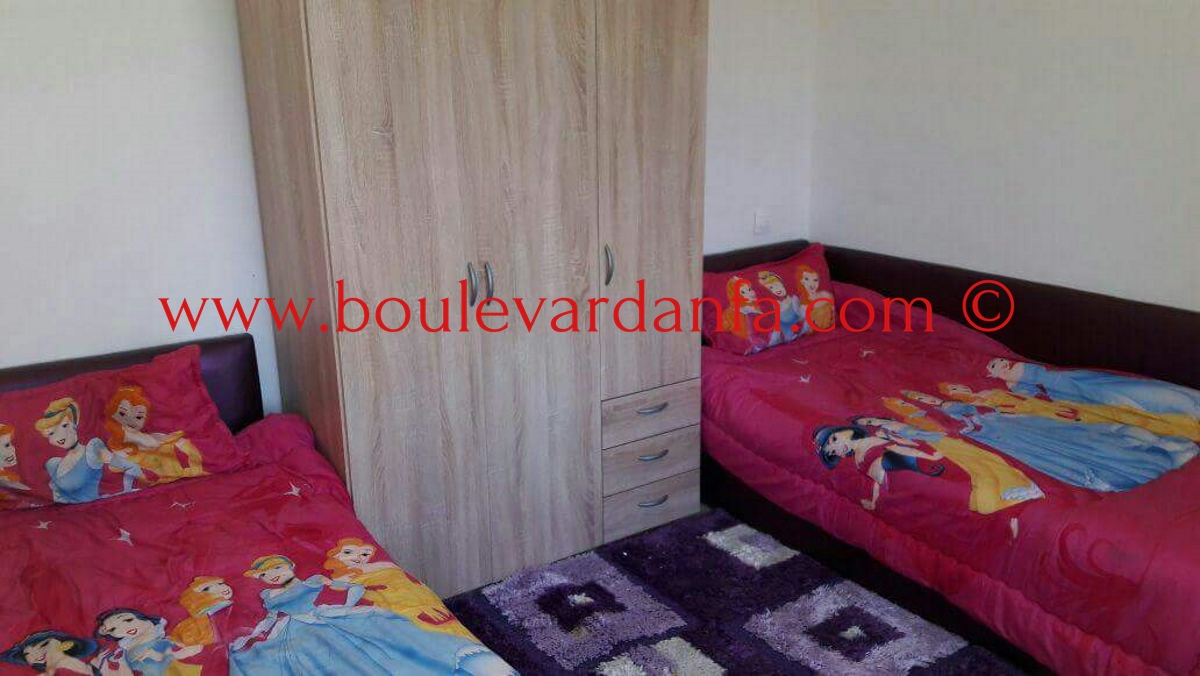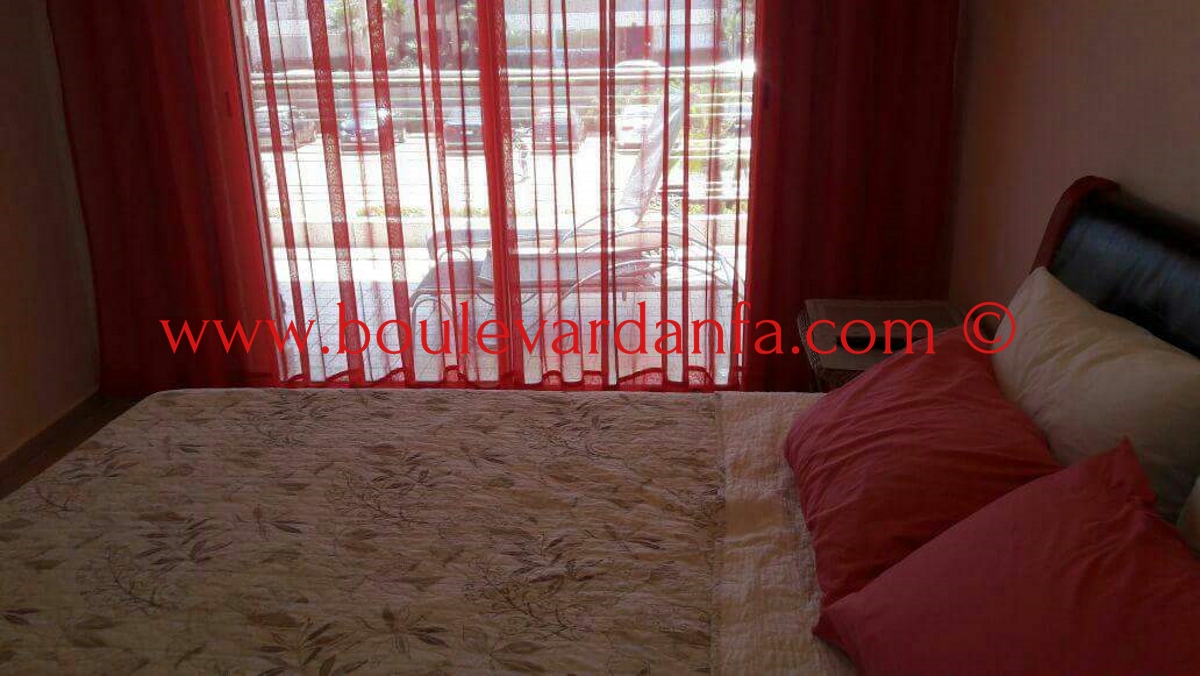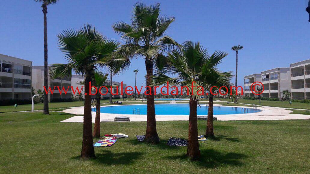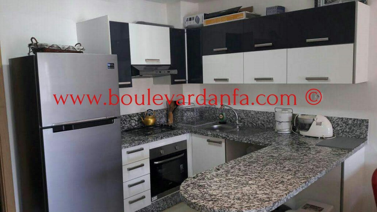 Joli appartement meublé de 80m² à louer dans la station balnéaire Ola Blanca à Sidi Rahal. L'appartement est composé de deux chambres, une cuisine bien équipée, une salle de bain, un coin salle à manger et un balcon.