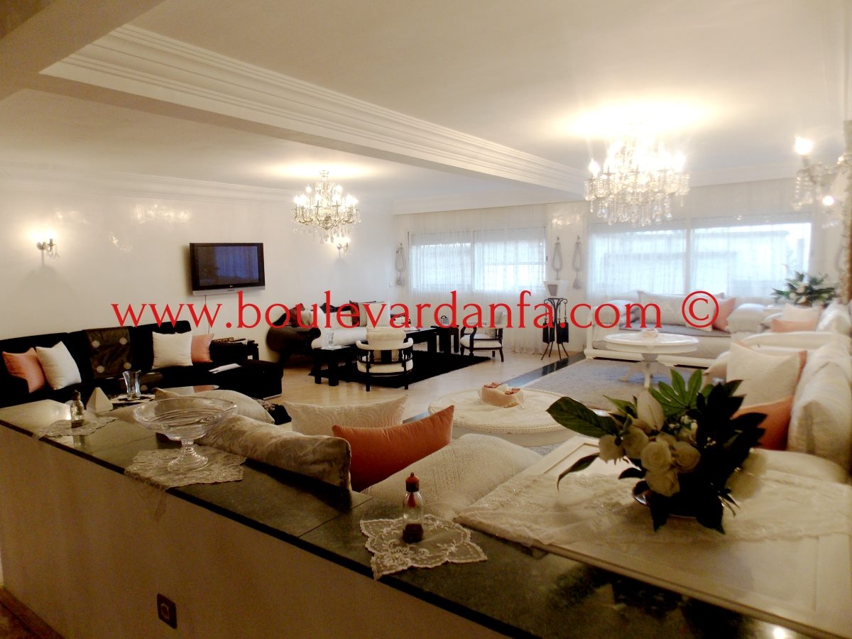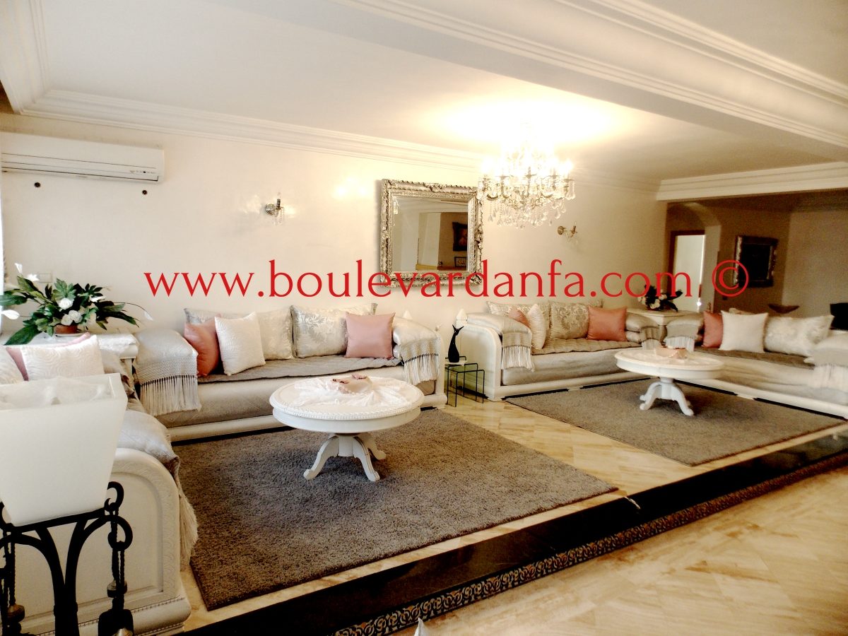 Très bel appartement meublé de 240m² à louer à Racine, pas très loin de Zara Home. L'appartement est composé de 4 chambres, un grand salon, 3 salles de bain, une cuisine bien équipée, une grande terrasse et un balcon.